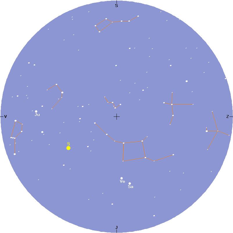 | Slunce | 0.986AU | 49.0° | 10.7° | 21h17m00s | -15°48'04'' | 316°47'52'' | 0°00'00'' |